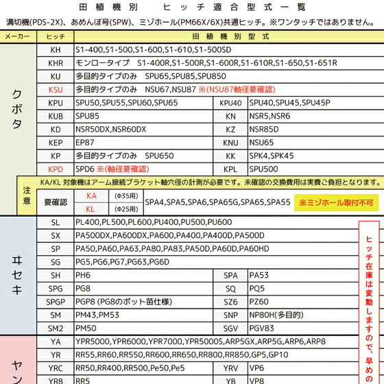 ●クボタ、ヤンマー、イセキ、三菱の各田植機に取り付け可能。