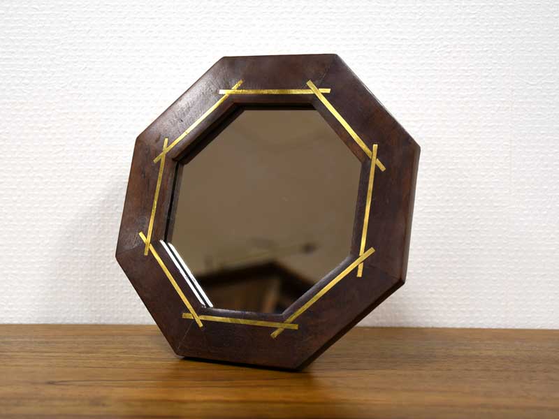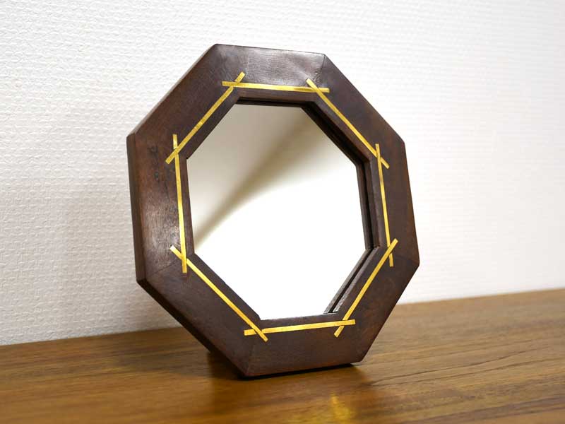 DETAIL Wood & Brass Octagon Mirror Stand Wood & Brass Octagon Mirror Standウッド&ブラス オクタゴン スタンドミラー 水牛の骨をベースに真鍮のゴールドラインを組み込んだスタンドミラー。