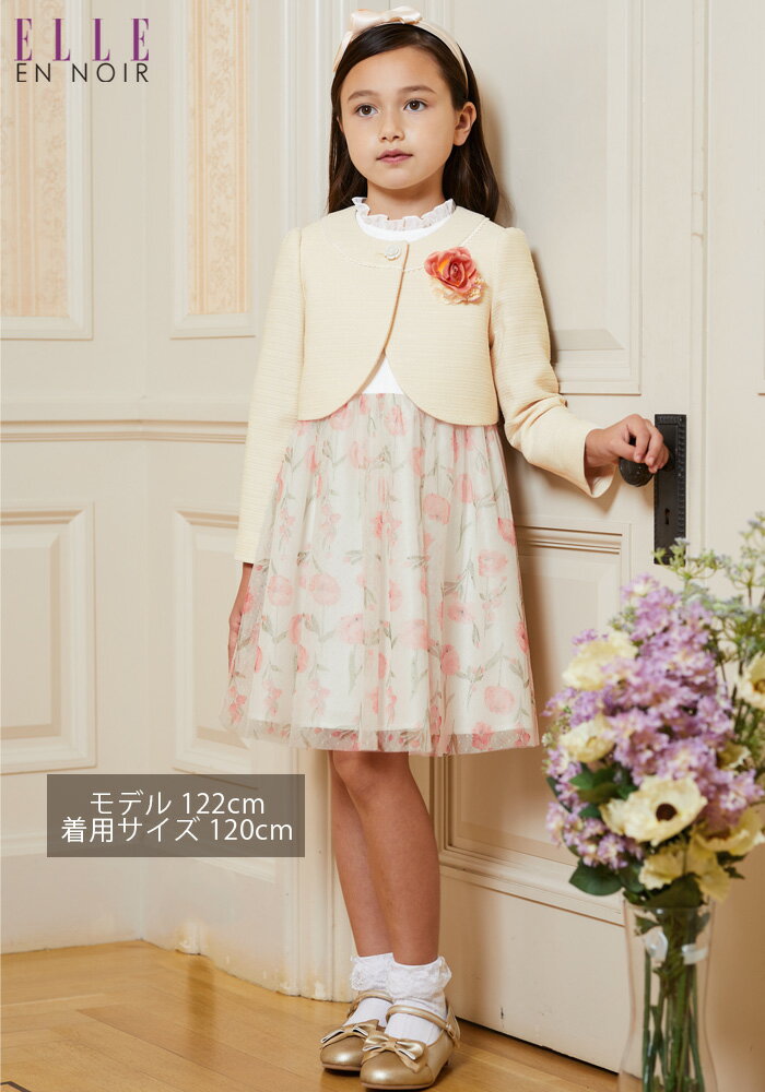 入学式 スーツ 子供服 女の子 ツイードライクボレロ×アンティークローズアンサンブル 120 130cm(4101-8309) ELLE en noir[キッズ フォーマル 卒園式 結婚式 発表会 ワンピース レース 花柄 ホワイト ピンク] 2021年モデル